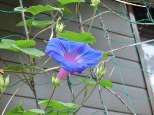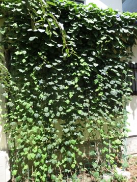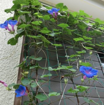 去年植えた野アサガオは今年は元気に茂って見事な緑のカーテンになりました