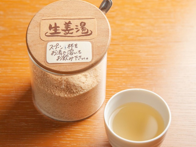 「生姜、粗製糖、葛、蓮根」の粉末が入った生姜湯です。