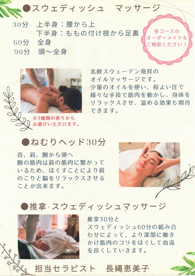 スウェーディッシュ・マッサージ 30分/60分/90分