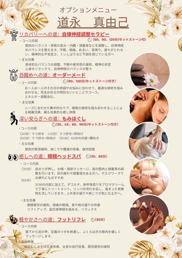 もみほぐし 30分/45分/60分/90分(全コースホットストーン付き)