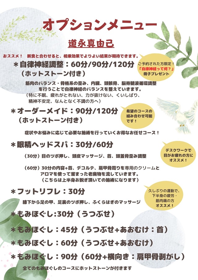 ※ご予約の方限定で「自律神経って何?」冊子プレゼント