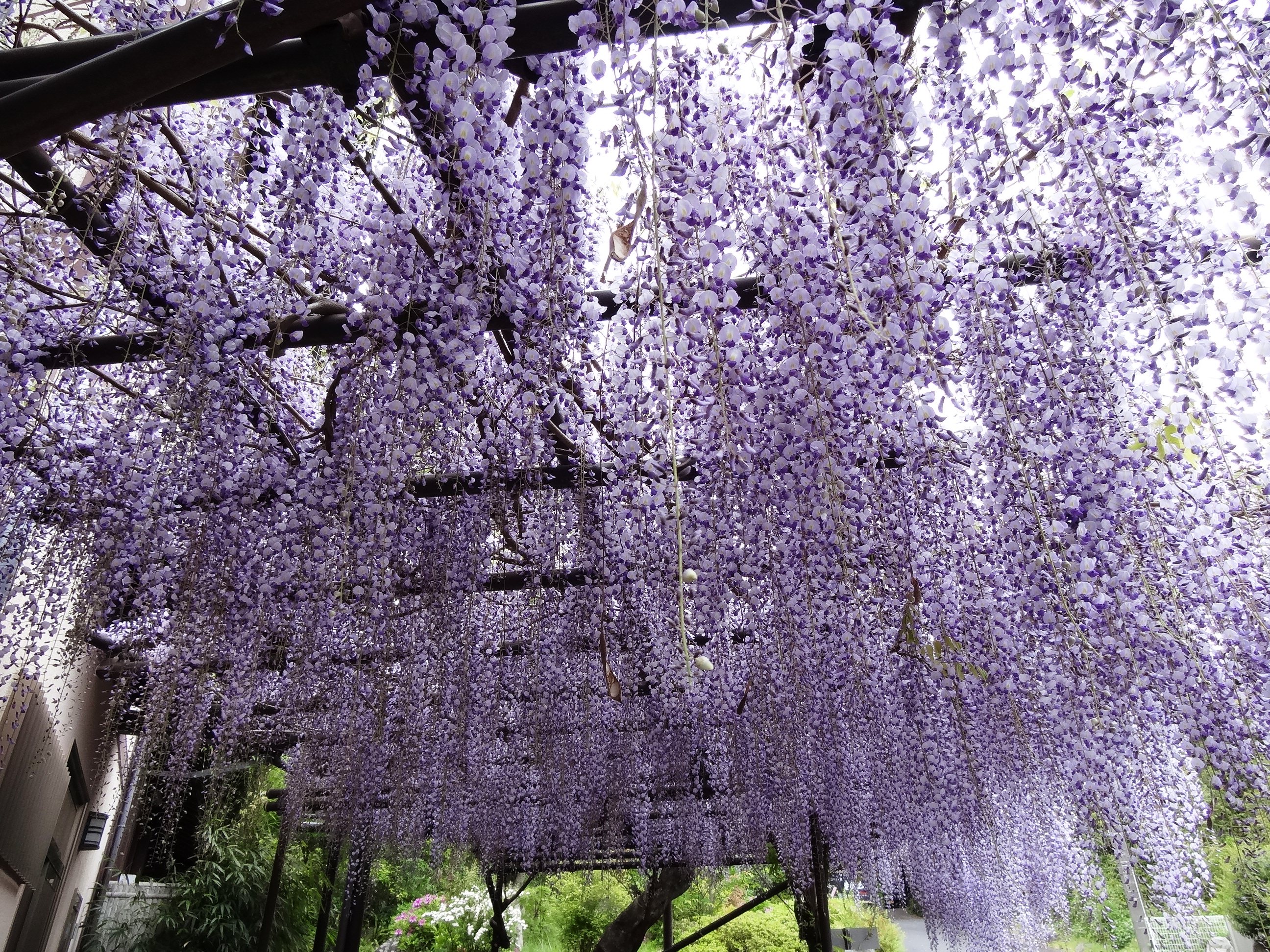やすらぎの里から少し下ったお宅では、 今、藤の花が満開になっています。