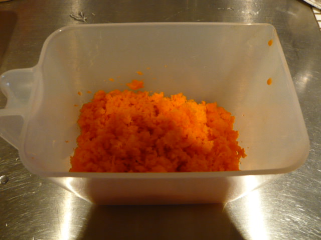 ジュースを絞ると食物繊維など絞りかすが出ますが、人参のかすはそのまま