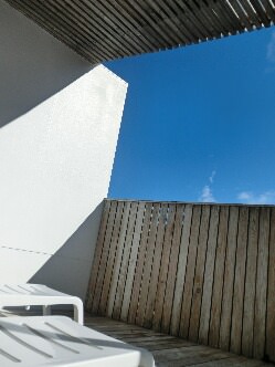 テラスには露天風呂とデッキチェアが置いてあります あいにく露天風呂は他の方が入用中で写真は撮れませんでした