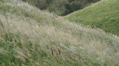 折からの風に煽られススキが波打つ様は感動ものです 動画でお伝えできないのが残念です