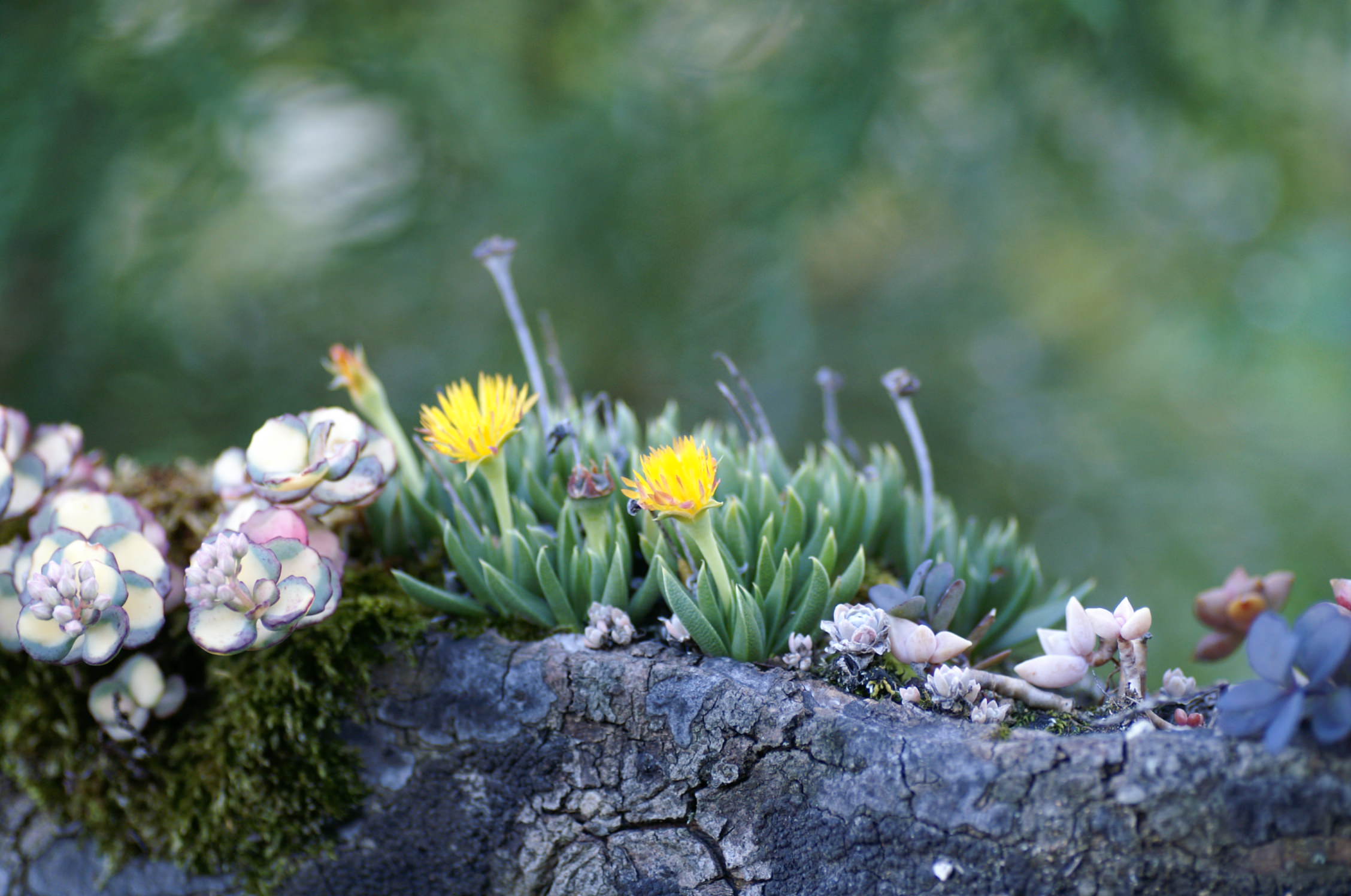 節子さんが丹精込めて育てている何百種類の山野草が四季折々に色々な花を
