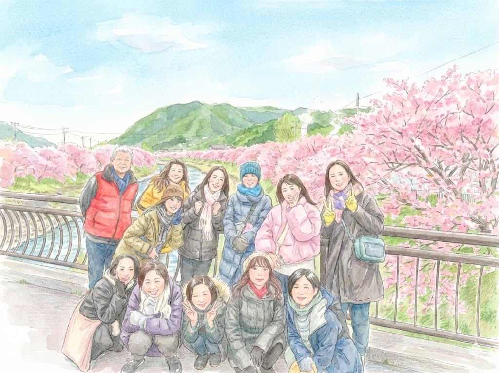 🌸河津桜お花見ツアーイラスト🌸